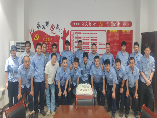學(xué)習(xí)結(jié)束后,就進(jìn)入了第二個班組活動——回顧往昔,慶?!叭比龤q生日。磨工班組的成員們齊聲喊出“磨工班組三歲啦!”,有人趕忙去拿蛋糕,有人忙著搬桌子,還有人拆蛋糕包裝。組員彭高和高強小心翼翼地拿著蛋糕轉(zhuǎn)來轉(zhuǎn)去,認(rèn)真找著合適的角度,想把這開心的一刻拍下來留作紀(jì)念。作為這個大家庭的一員,每個人都在用心為這場慶?;顒映隽Γ浞终宫F(xiàn)出團隊的凝聚力 。