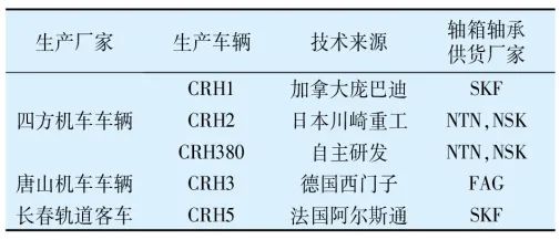 Tab.3 Technology sources of EMUs and manufacturers of imported bearings