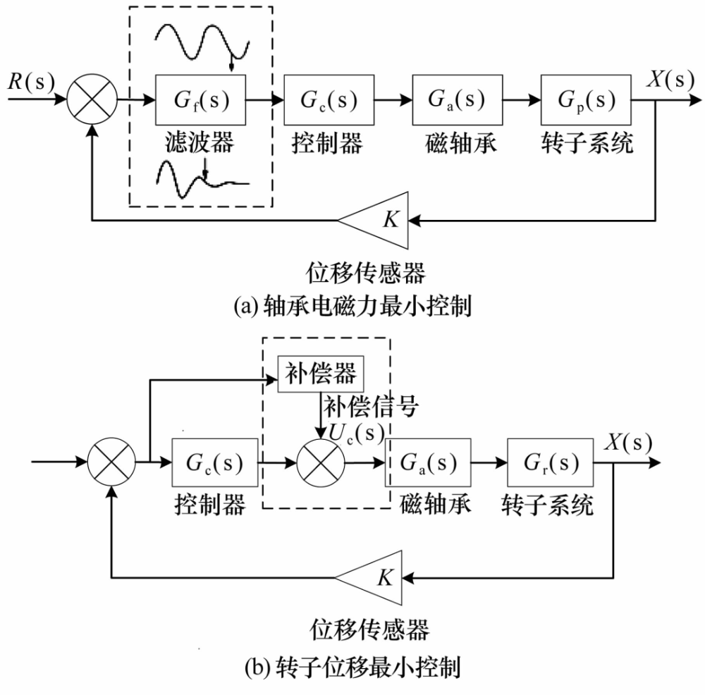 傳統(tǒng)意義上的磁懸浮轉(zhuǎn)子不平衡補(bǔ)償多是考慮磁軸承單獨(dú)支承的情況,對于磁軸承為主要支承,其他支承方式為輔助支承情況下的不平衡振動(dòng)控制,尚未見相關(guān)研究。例如,近年來興起的磁+氣混合軸承支承,轉(zhuǎn)子不僅受到電磁力,還受到動(dòng)壓效應(yīng)產(chǎn)生的氣浮力,轉(zhuǎn)子的不平衡周期振動(dòng)在受到控制器周期控制力的同時(shí),還受到由于氣隙周期變化產(chǎn)生的周期性波動(dòng)氣浮力的影響,對于此類支承方式下的轉(zhuǎn)子,首先需要通過研究其動(dòng)力學(xué)特性獲取轉(zhuǎn)子的不平衡振動(dòng)特征,然后進(jìn)行不平衡振動(dòng)的控制,這一研究仍待開展。